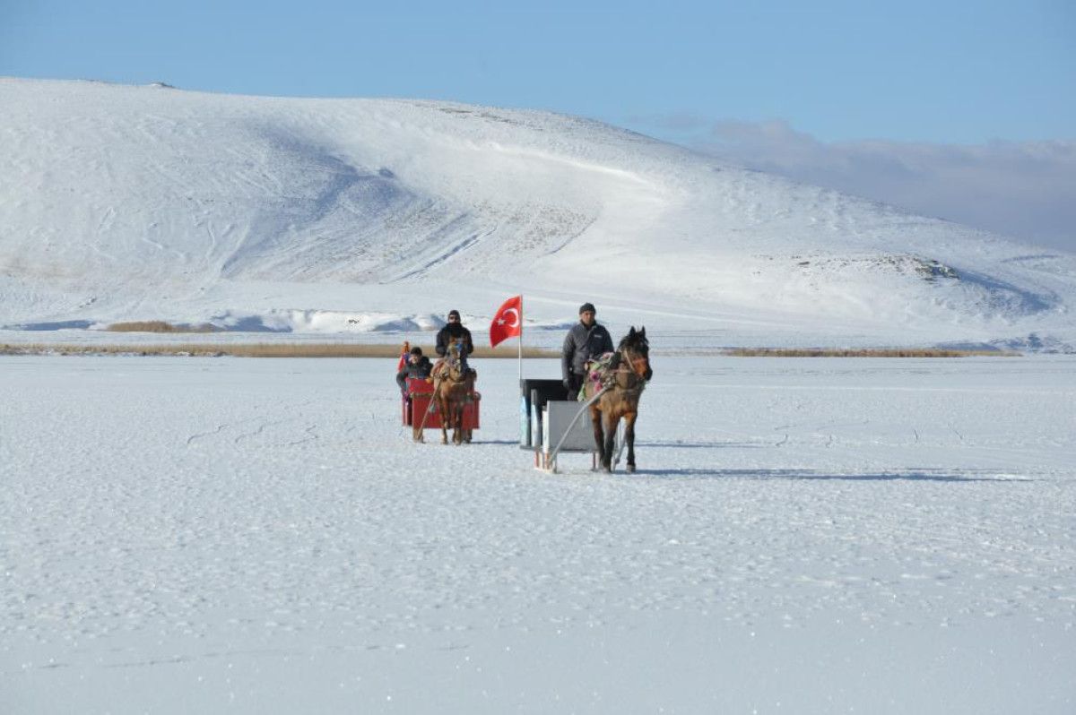 Öte yandan Kars Çıldır Gölü’ne gelen yerli ve yabancı turistler, sadece atlı kızak keyfi yapmakla kalmıyor, aynı zamanda buzun kırılmasıyla yapılan sarıbalık avını izliyor, göl kenarındaki tesislerde taze tutulmuş sazan balığının tadına bakıyor.