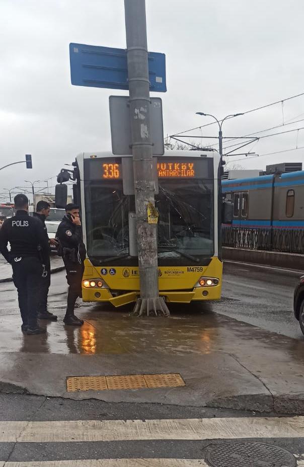 İstanbul’un Sultangazi ilçesinde 336 Arnavutköy-Eminönü seferini yapan İETT otobüsü, Malkoçoğlu Mahallesi’nde ilerlediği sırada, yola dökülen yakıt ve yağmur nedeniyle kayganlaşan yolda virajı alamayarak trafik levhası direğine çarptı.
