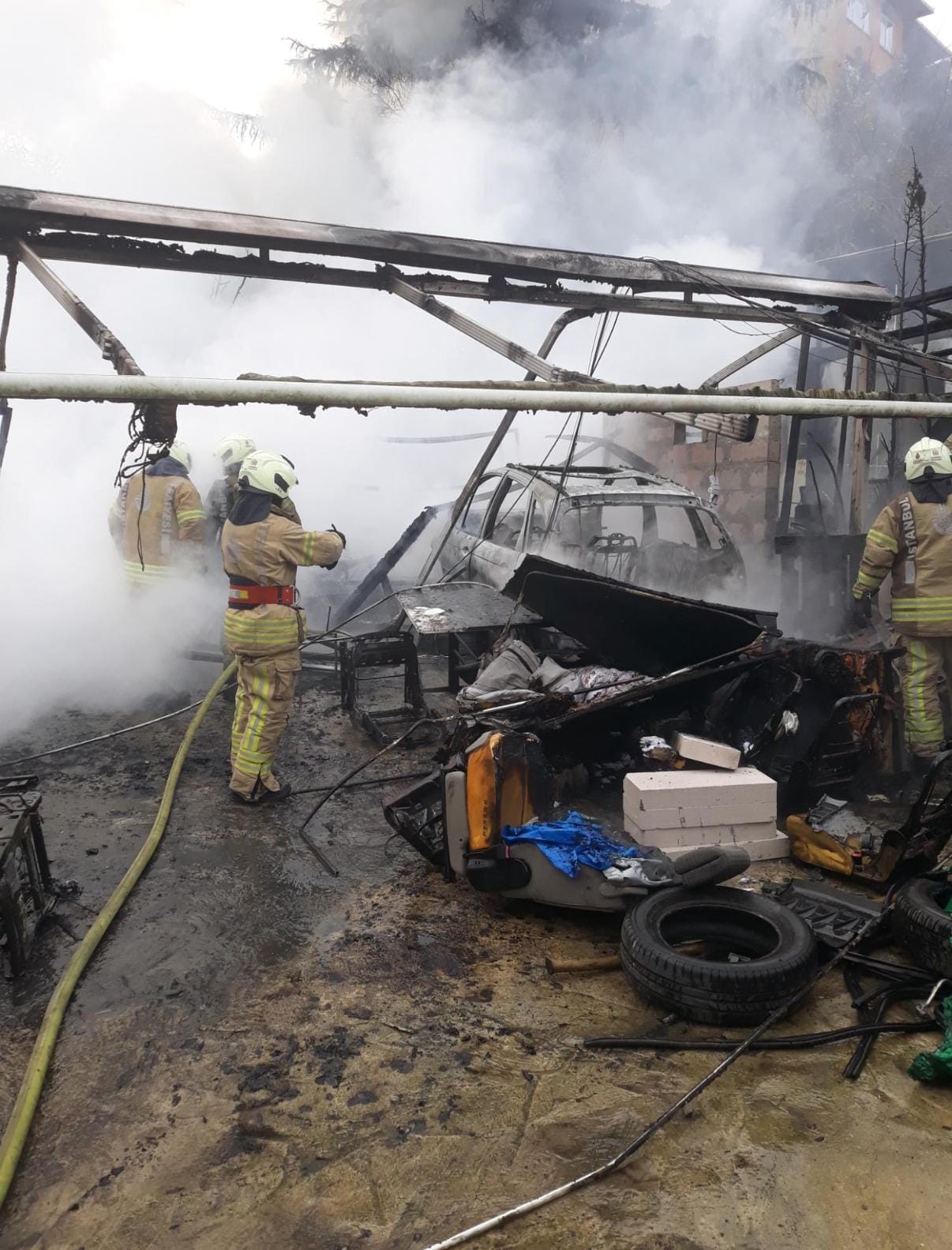 Yangın, saat 13.15 sıralarında Yeniköy Mahallesi Çimenzar Sokak’ta bulunan oto tamirhanesinde çıktı. Ruhsatsız olduğu iddia edilen tamirhanede, elektrik kaçağı nedeniyle çıktığı öğrenilen yangını görenler durumu itfaiyeye bildirdi. İhbar üzerine olay yerine çok sayıda itfaiye, sağlık ve polis ekibi sevk edildi. Alevlerin sprey boyalara sıçramasıyla oluşan yoğun siyah duman Anadolu Yakası’ndan da görüldü. İtfaiye ekiplerinin müdahalesiyle yangın yaklaşık 1 saatte söndürüldü.